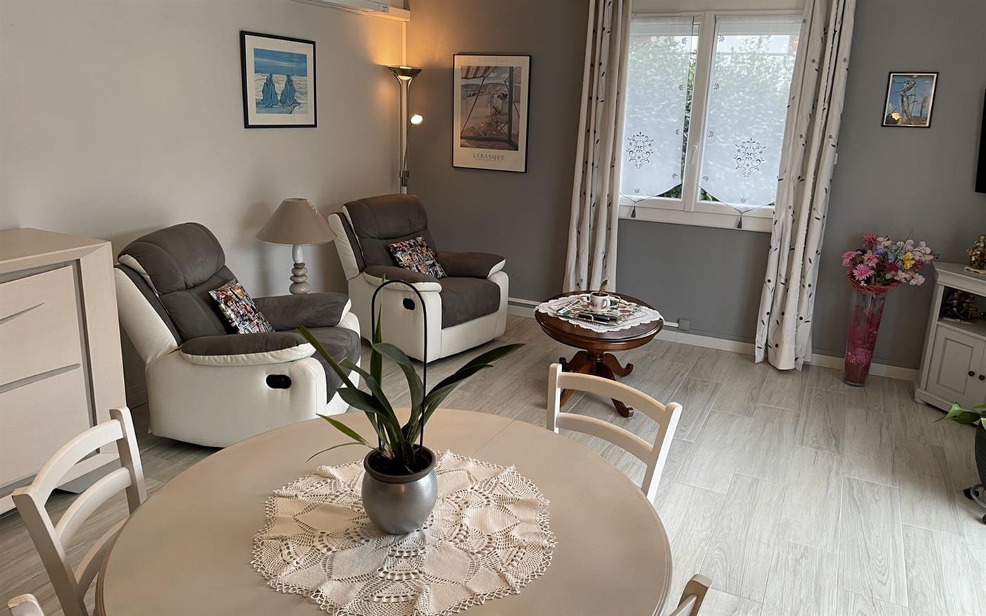 On the left, the kitchen is independent and equipped with a dishwasher, ceramic hob, microwave, mini-oven and a fridge with freezer compartment. On the right, the living room / lounge is composed of a flat screen TV, sofa and opens onto the balcony. The bedroom is spacious and has 1 bed in 140 and storage cupboards. The bathroom is equipped with an Italian shower. The toilets are independent.