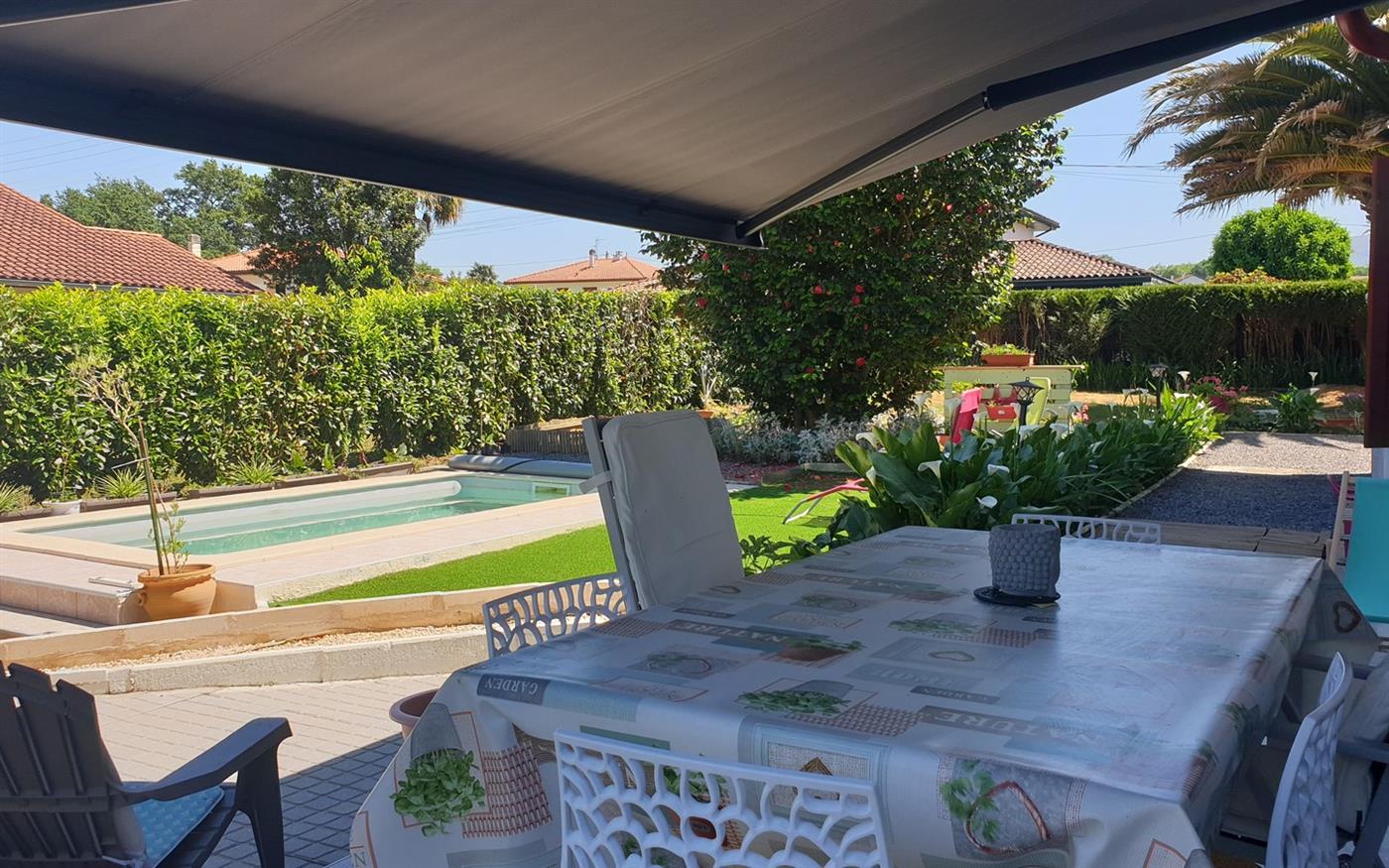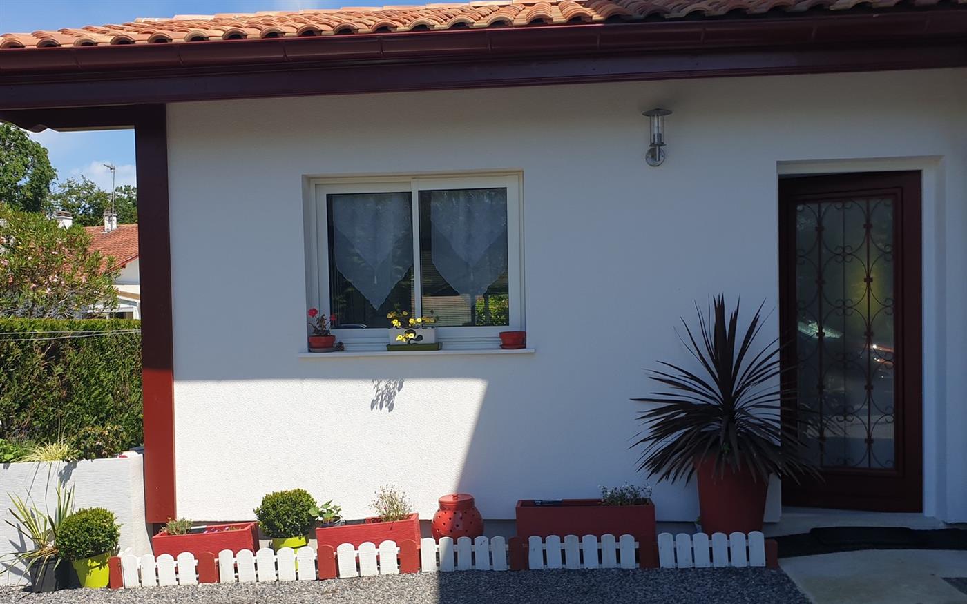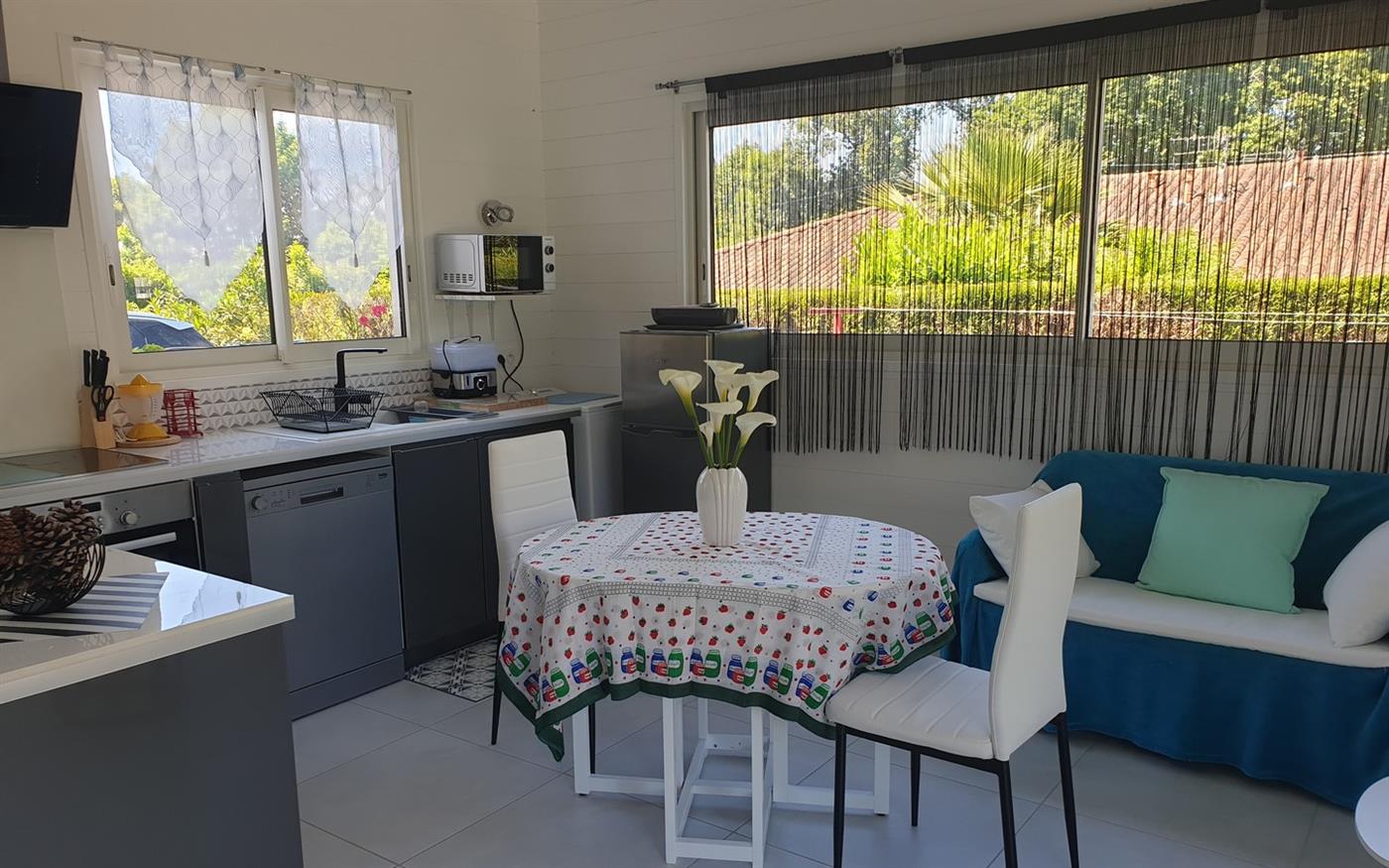 Ground-floor apartment in the owners' house, located in a residential area of Cambo-les-Bains. The kitchen, equipped with oven, microwave, dishwasher, washing machine and fridge with freezer compartment, opens onto the living area with sofa and TV. The bedroom has a 140cm bed. Separate toilet. Outside: parking, garden, terrace with garden furniture, barbecue, private swimming pool and private spa.