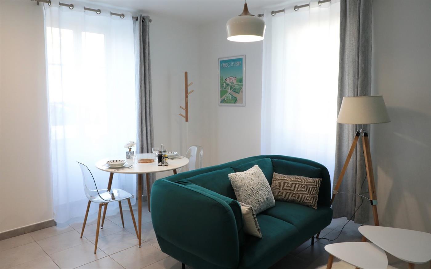 Entirely renovated with taste in 2022, functional and comfortable apartment of 32 m2 on the first floor of a residence, located at 50 m from the entrance of the thermal baths and at 900 m from the city center of Cambo-les-Bains.