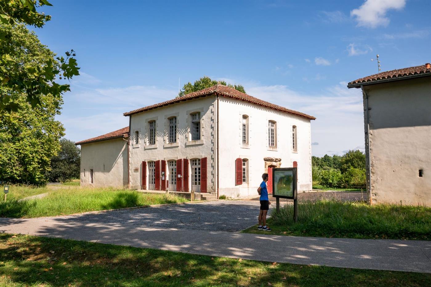 Atteindre la maison des Barthes. Cette ferme du XVIIIe (accessible) est devenue l’Accueil pour la plaine d’Ansot ainsi qu’un lieu d’information et d’exposition. Juste à côté, dans un grand bâtiment de bois et de pierre (ascenseur), est installé le muséum d’histoire naturelle qui présente une belle collection d’animaux, des panneaux explicatifs sur les barthes, des devinettes. À l’arrière de ces bâtiments, voir le potager et apprendre à gérer de façon écologique. Grimper dans l’observatoire des oiseaux. Il est possible de faire le début du sentier « Eau » (personnes en fauteuil accompagnées) jusqu’au centre de documentation (parcours d’interprétation des arbres) : 500 m de plus aller et retour (circuit en rose sur le plan). Les personnes avec des poussettes pourront effectuer les autres sentiers dont le sentier « Faune » qui traverse la forêt et qui est très bien documenté (3 km).Step 4 :