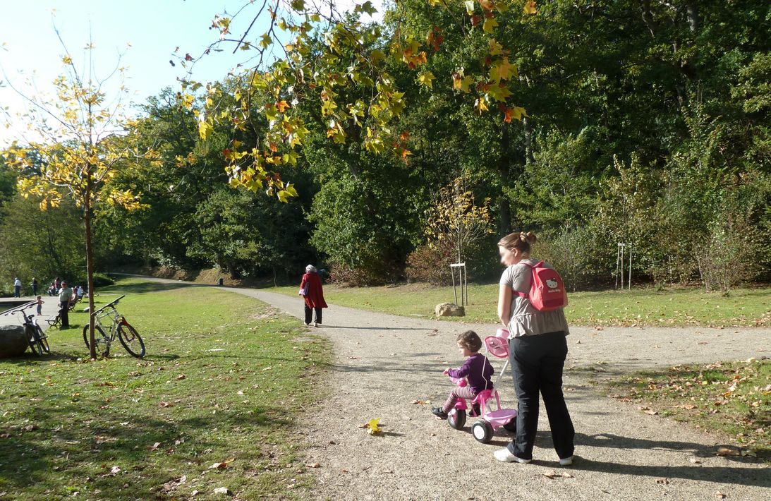 Arriver au lac avec son quai pour la pêche et le modélisme naval. En poursuivant, le sentier monte en pente très douce vers le pêchoir qui permet d’avoir une vue sur le lac. Retour par le même chemin pour les personnes en fauteuil. La suite comporte des dénivelés ; pour faire le tour, contourner une zone humide de marais et de tourbière et revenir par la rue des Mouettes (attention voitures).