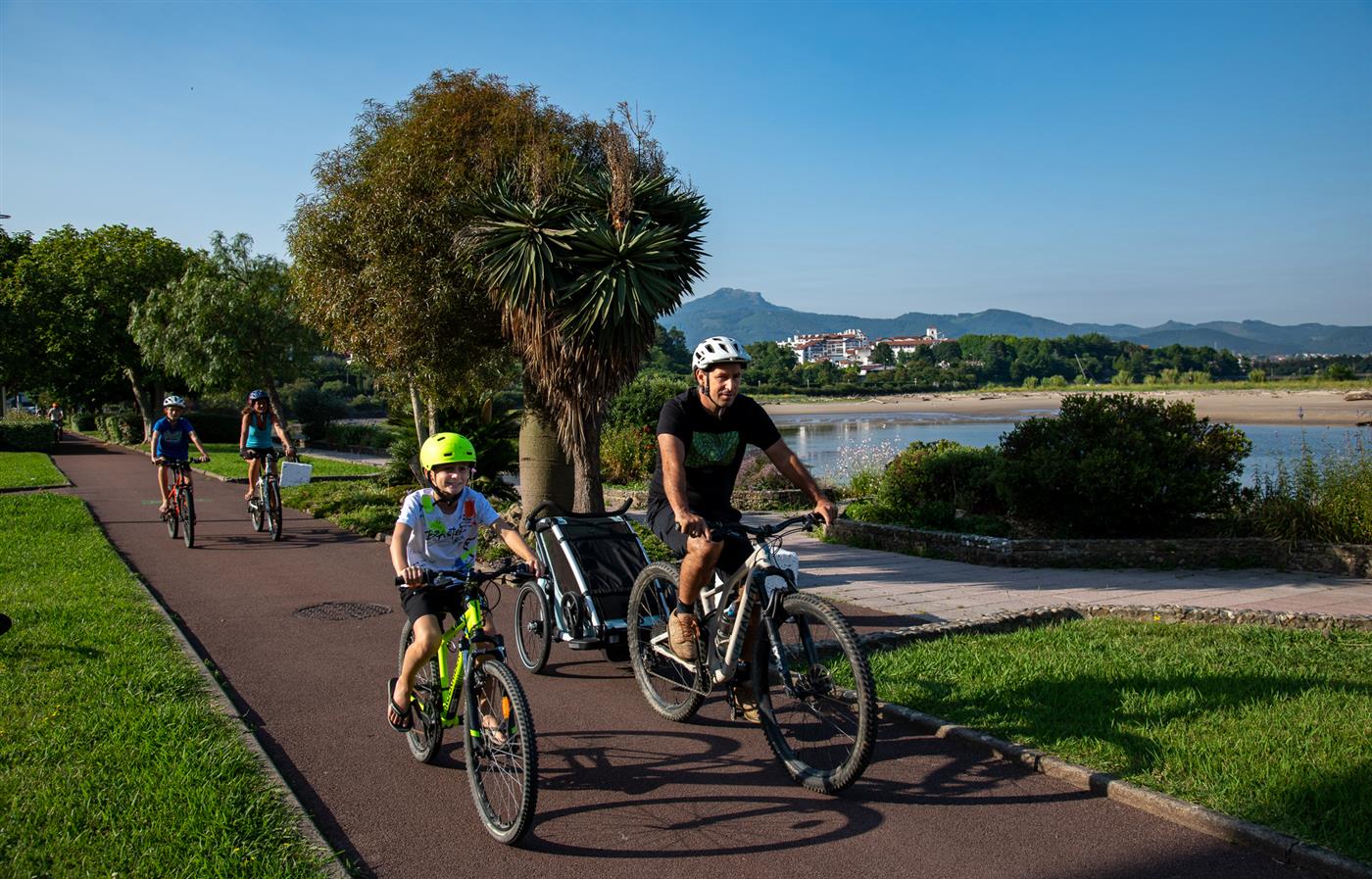 La baie de Chingoudy Au vieux port de Caneta, passer entre les quelques barques en cale sèche et poursuivre sur la promenade littorale, une passerelle récente passant au pied de la villa Mauresque et des anciennes fortifications de Vauban. Modérer votre allure au passage étroit au pied d’un fortin (canon) puis sur un passage aménagé en encorbellement. Découvrir ainsi la baie de Txingudi, que l’on va longer sur toute sa frange française par une voie cyclable goudronnée. Dépasser une aire de jeux pour enfants puis rouler sur l’allée fleurie.Step 3 :