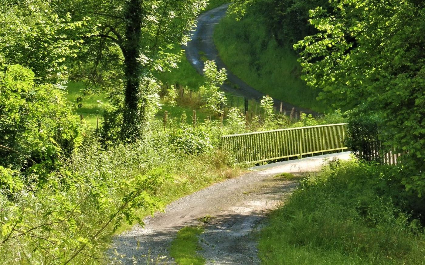 Croisement avant le pont Remonter sur la gauche, avec quelques passages un peu raides. Après un faux plat montant en bordure de prairies, on arrive à un carrefour. Prendre à droite la petite route goudronnée qui descend jusqu’au croisement où l’on rejoint l’itinéraire de montée.Step 5 :