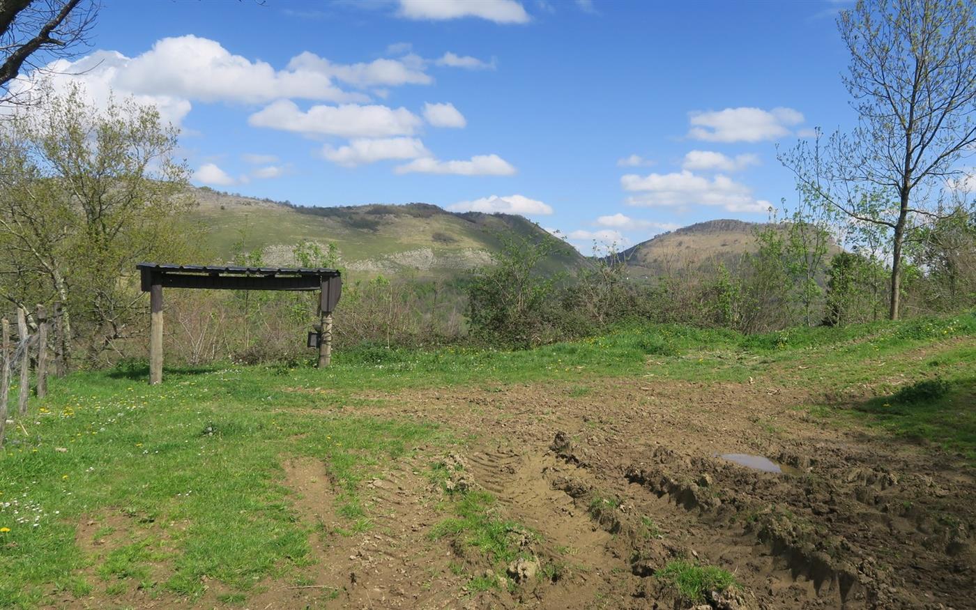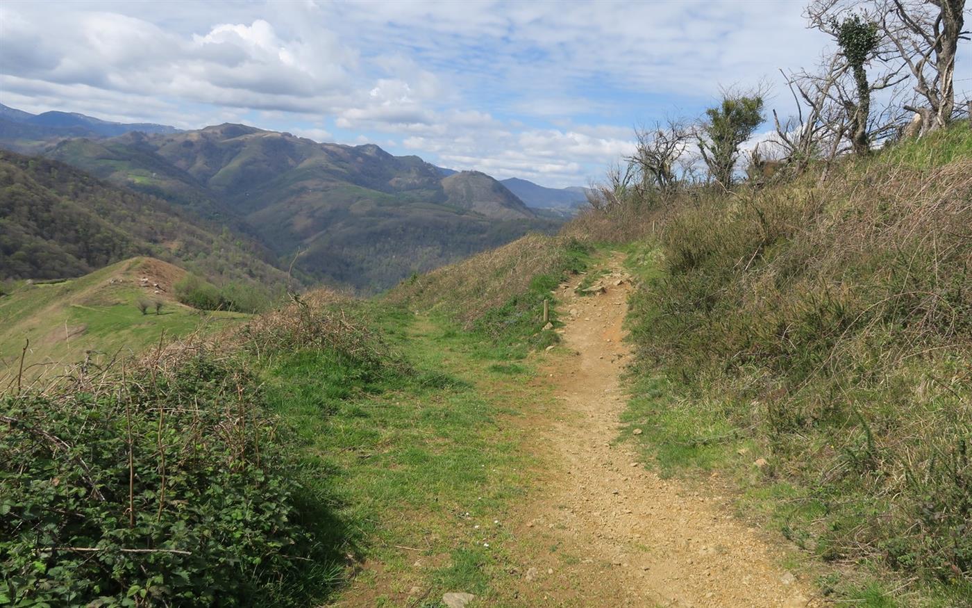 Grange Etchapia Dans le prolongement de la piste de la grange, emprunter le sentier rentrant dans la forêt. Arrivé sur un autre sentier, prendre celui-ci à gauche en descendant pour suivre le chemin emprunté à l’aller jusqu’au parking.