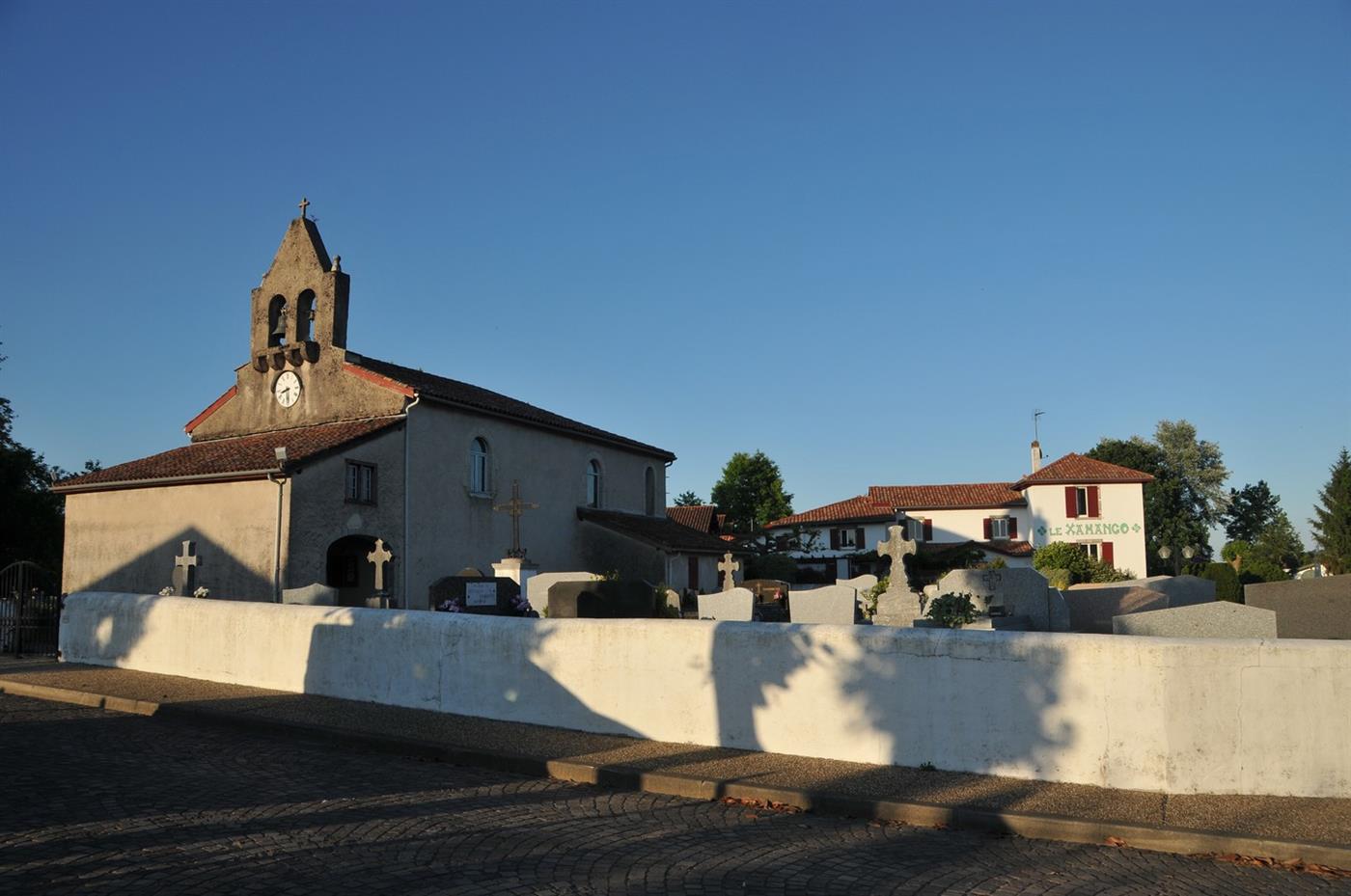 Retour à Elizaberry De l'intersection déjà visitée à l'aller, descendre sur la route à gauche vers le vallon, puis remonter à gauche jusqu'à l'église d'Elizaberry.
