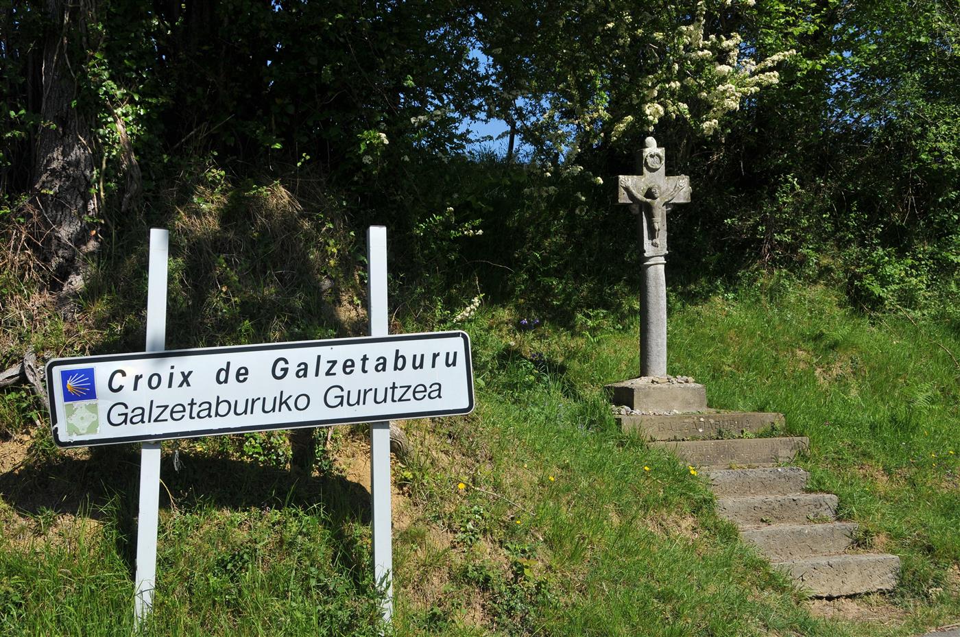 Au moment de quitter la vallée de la Bidouze, un petit col routier marque l'entrée dans le pays de Garazi, à une douzaine de kilomètres de la promise Saint-Jean-Pied-de-Port. Au moment de reprendre votre souffle, remarquez sur votre droite une croix en pierre très ancienne (datée de 1714), avec Christ naïf en relief, classée aux Monuments Historiques.