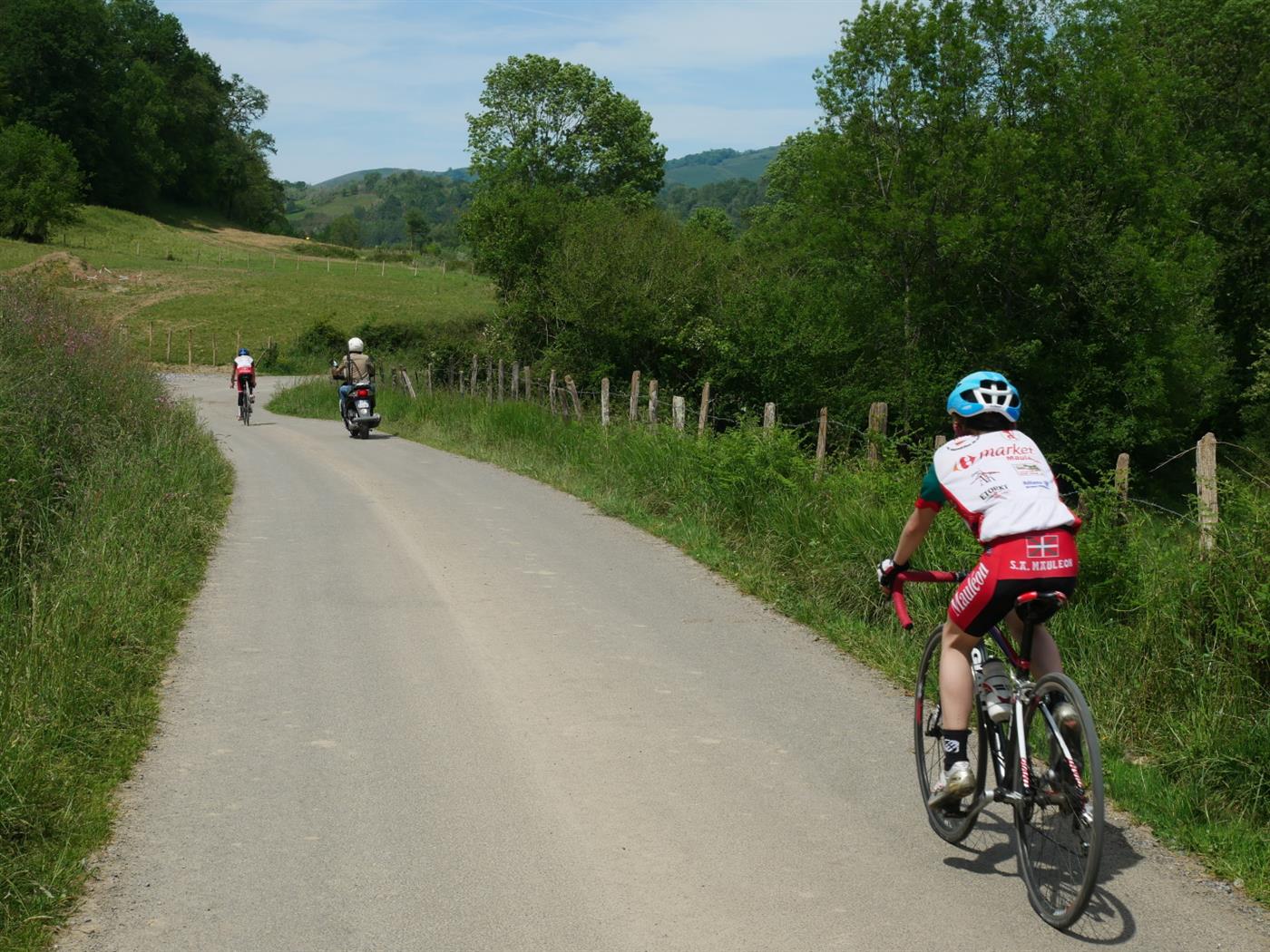 - Du point haut alt. 293m jusqu’au village de Camou, longue descente rapide. (43.11288;-0.90576)